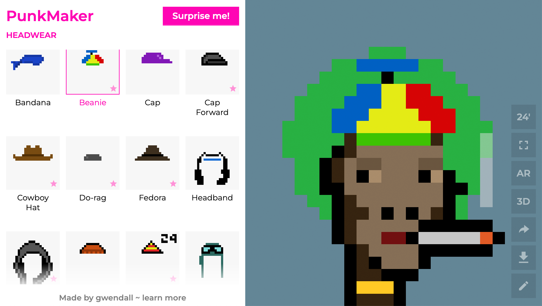 While the visualizer Matt & John showed me was pretty cool, I remember immediately thinking there could be a totally different way to show how Punks were constructed that would not only be just as cool visually (perhaps even cooler,) it could also have the added bonus of a truly killer feature: it would be INTERACTIVE...