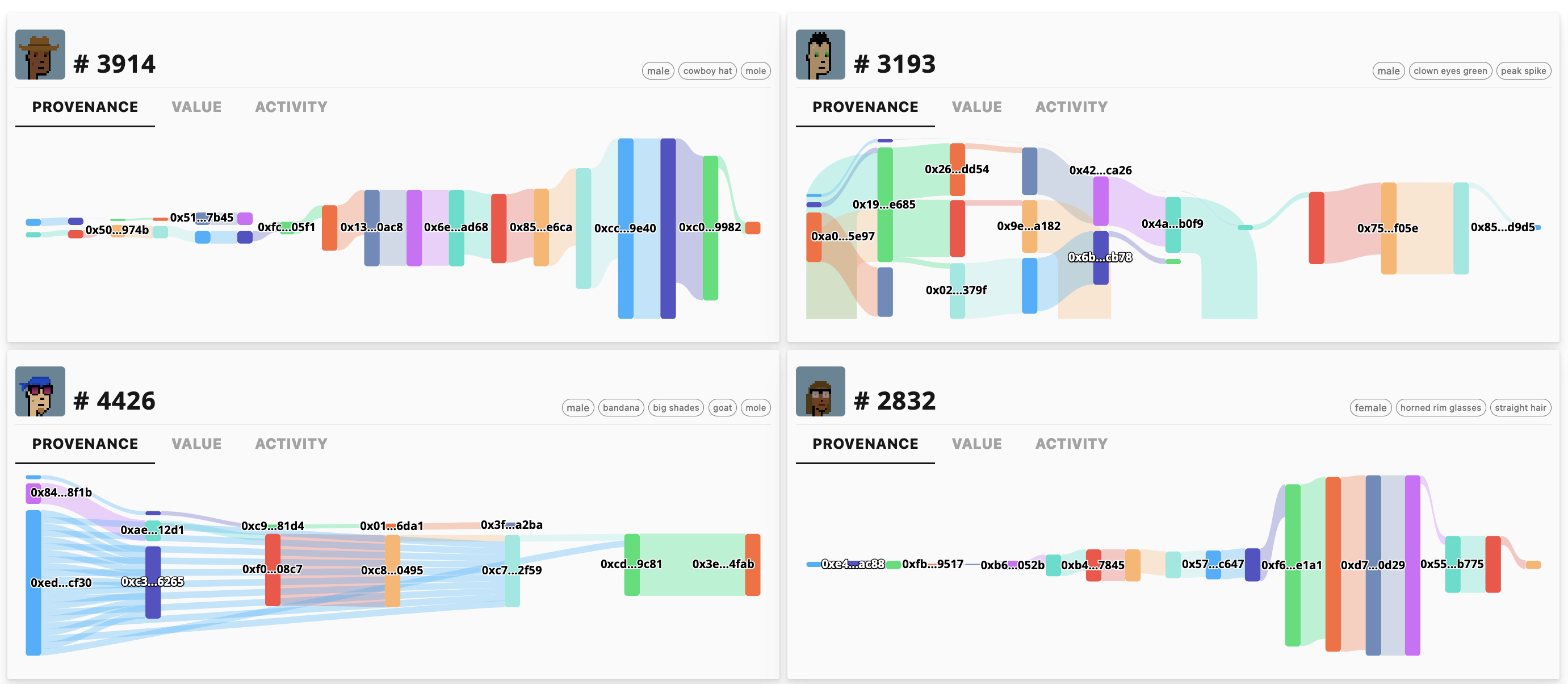 graphics to show transaction histories and Punk provenance-journeys through the years.